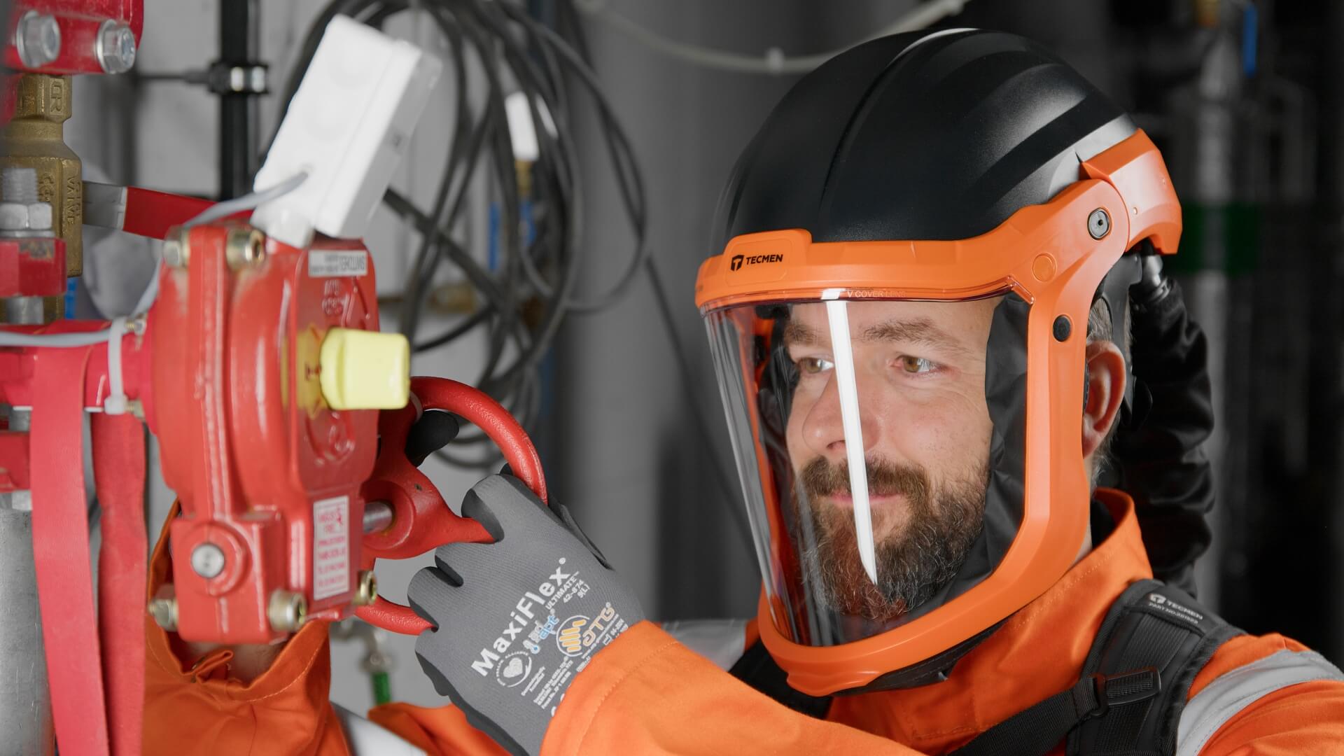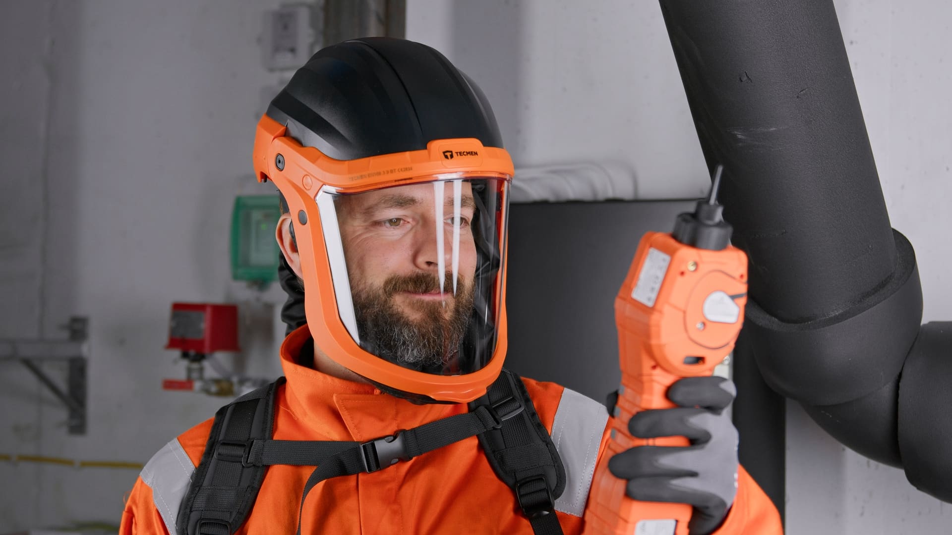 Tecmen G20-V er en komplett hjelm- og ansiktsløsning som kombinerer solid hodebeskyttelse med ansiktsvisir. Designet for bruk med viftemotor ExFlow E4-T. Hjelmen gir helhetlig beskyttelse av hode, ansikt og pustesone i krevende arbeidsmiljøer.