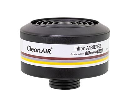 Filtre kan enkelt skrus på plass. Med 40 mm gjenger kan de brukes med CleanAIR hel- og halvmasker, samt 2F viftemotor.