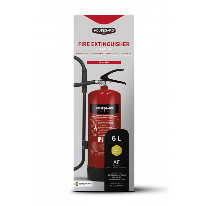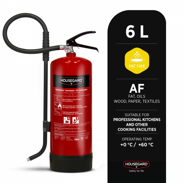 En spesielt utviklet brannslukker til slukking av brann i matfett og vegetabilske oljer. Fettbrannslukkere inneholder et slukkemiddel som er spesialutviklet for slukking av branner i brannklasse F, matfett og vegetabilske oljer. Beregnet for bruk i kjøkken og lokaler hvor mat og frityroljer benyttes. Housegard fettbrannslukkere kan også benyttes mot A-branner, men da med begrenset effekt.