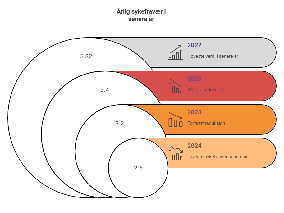 SG Safety sitt sykefravær har gjennom årene vært lavt. Etter noen år med høyere fravær grunnet covid og langtidsfravær er vi nå tilbake til normalen. Sykefraværet endte i perioden 2023-2024 på 2,9 %. Vi jobber systematisk for å holde sykefraværet nede, og har fokus på tett oppfølging og tilrettelegging for sykemeldte. Vi gjennomfører jevnlige vernerunder for å påse at arbeidsforholdene er tilrettelagt og skjermet for unødig risiko