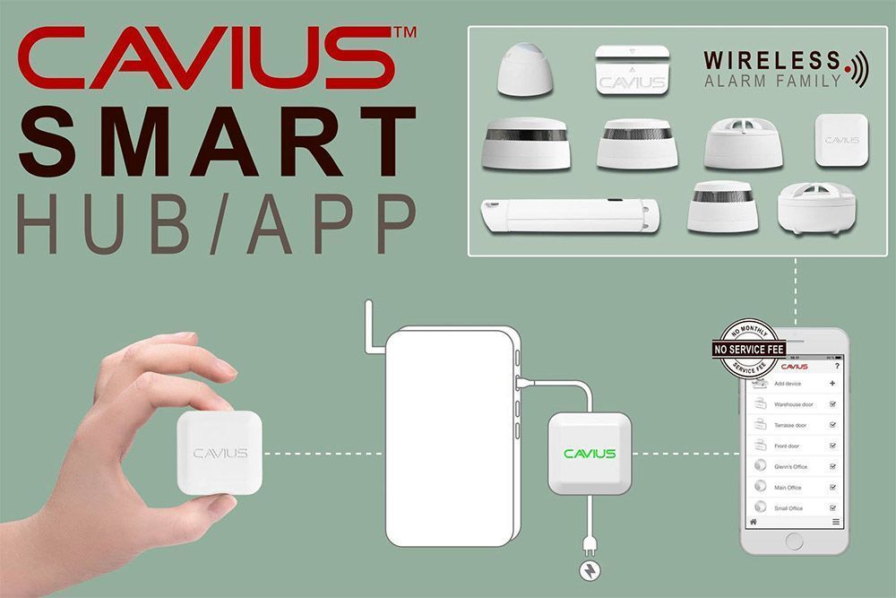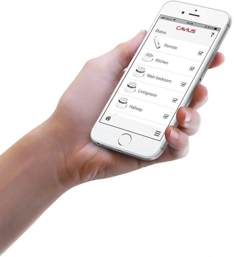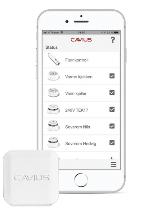 Hub'en er kompatibel med alle de trådløse varslerne fra Cavius. Den holder deg informert om hendelser som brann eller lekkasje, via mobil, nettbrett og e-post. Varselinnstillingene kan du selv tilpasse.