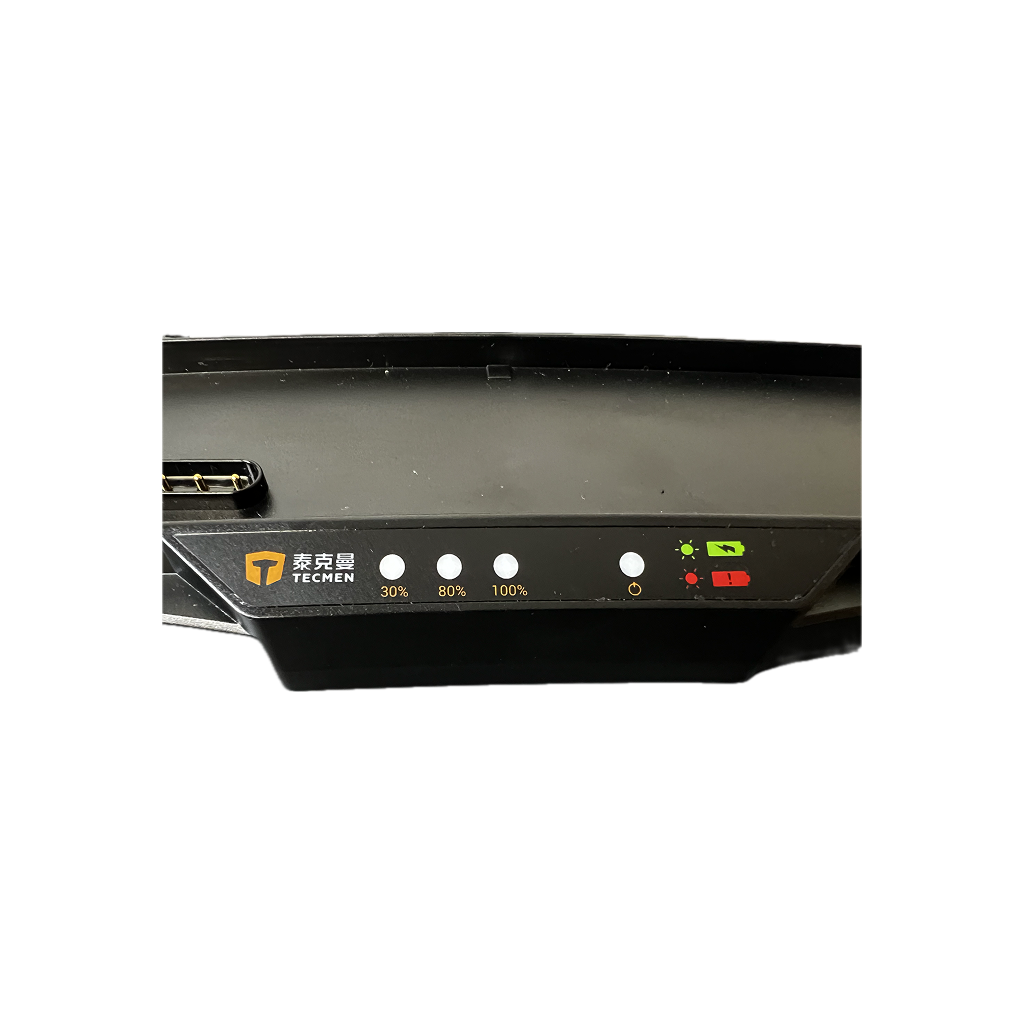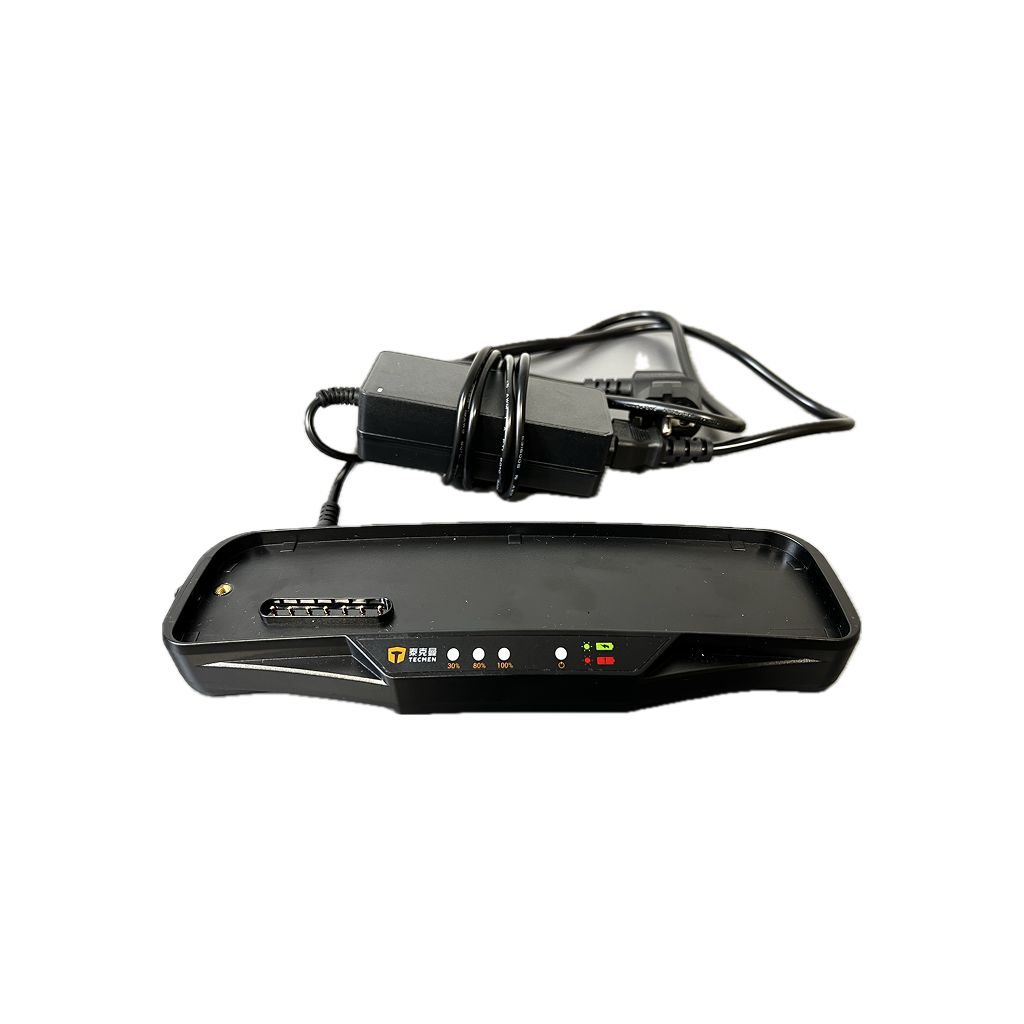 Effektiv lader utviklet spesielt for Tecmen ExFlow E4-T batteri. Laderen gir sikker og rask opplading av Li-ion-batteriet, og er utstyrt med LED-indikatorer som viser ladeprosent og status. Lader batteriet på bare 2,5 timer. Kompatibel med standard strømuttak.