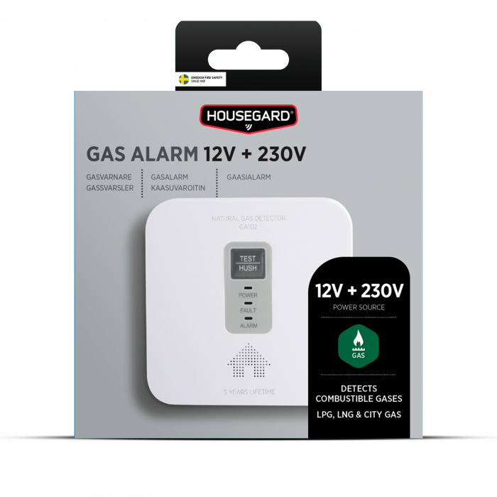 Housegard gassalarm gir effektiv oppdagelse og måling av de brennbare gassene LPG og LNG. Eksempelvis propan, butan, metan og naturgass. Gassvarsleren inkluderer adapter for tilkobling til 230V og er også kompatibel med 12V DC strømtilførsel, slik at den kan benyttes hjemme, samt i bobil, campingvogn og på hytta.