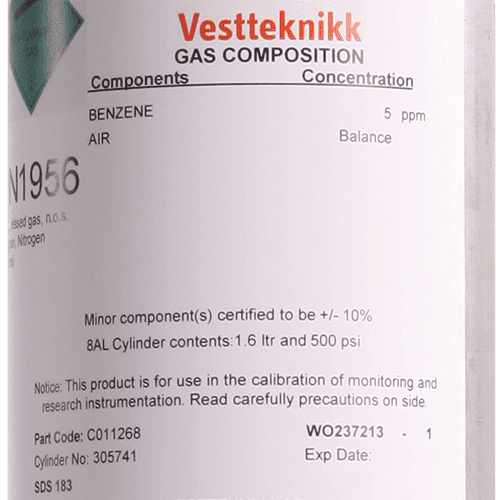 Testgass til funksjonstesting/ kalibrering av gassmålere. For kalibrering av PID-sensorer med benzen-forfilter.