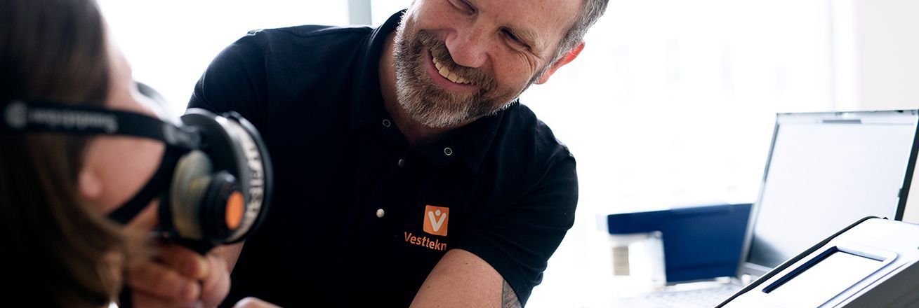For å sammenligne resultatene fra testen med tettsittende åndedrettsvern, ba vi en av personene ta samme test på halvmaske og helmaske.