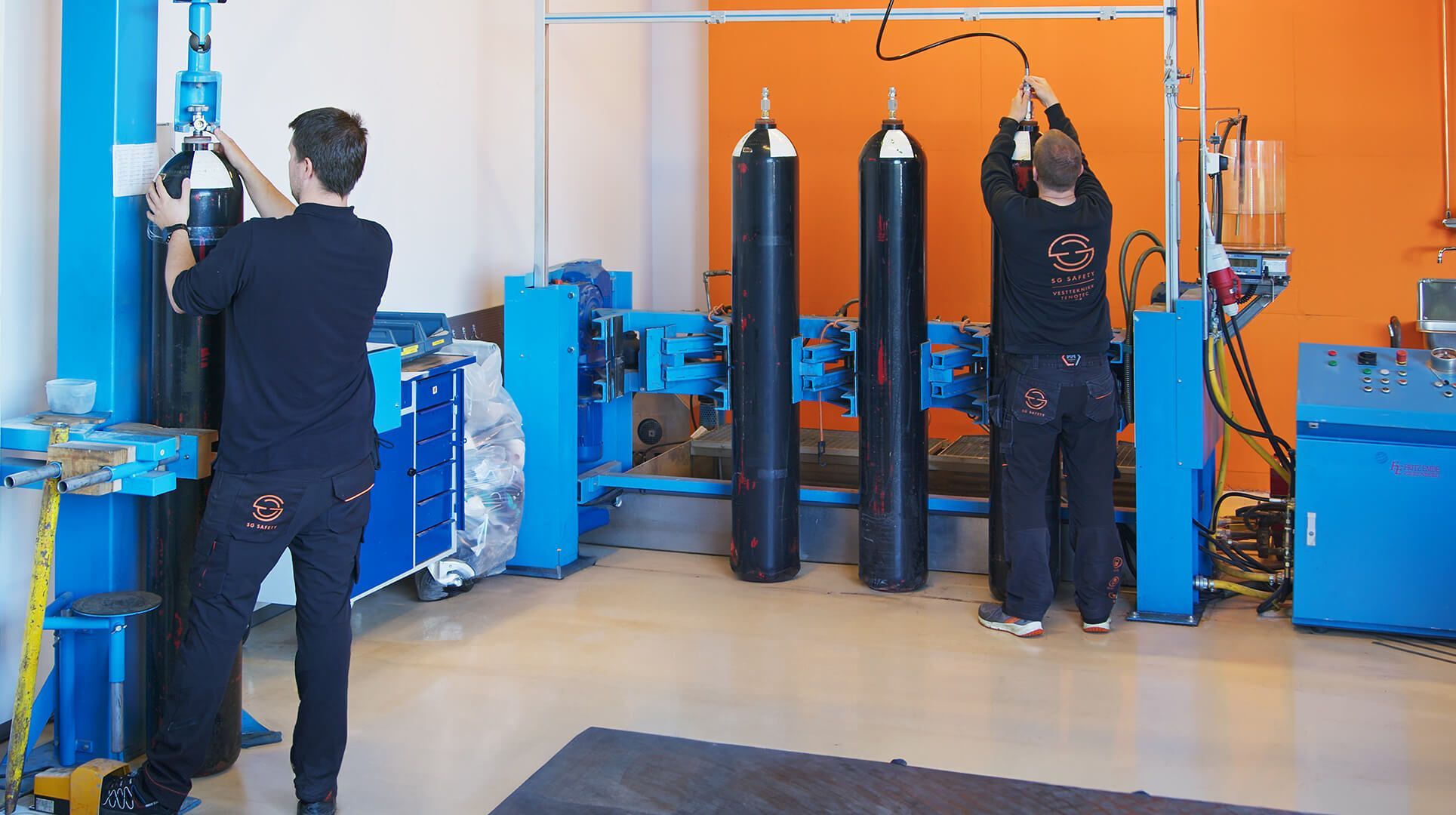Kontroll og trykkprøving skal utføres av en godkjent kontrollør. SG Safety har denne godkjenningen og utfører trykktesting av alle typer trykkluftsflasker fra alle produsenter.