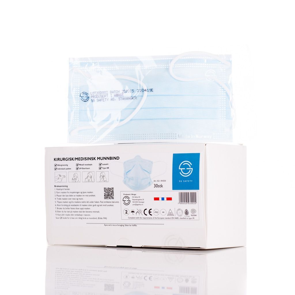 Munnbindene fra SG Safety er produsert i Norge og er tilpasset nordiske ansikter. For bedre passform er munnbindet 2 cm høyere over hake- og nesepartier når munnbindet tilpasses ansiktet. Foldene i front er altså litt dypere, noe som sikrer at bunnbindet rekker godt over både nese og hakeparti.