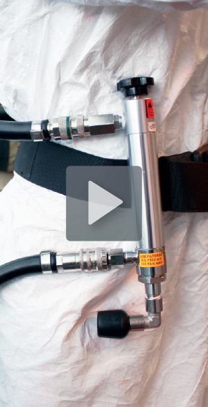 1. Fest varmeren i beltet ved bruk av lufttilført åndedrettsvern.
